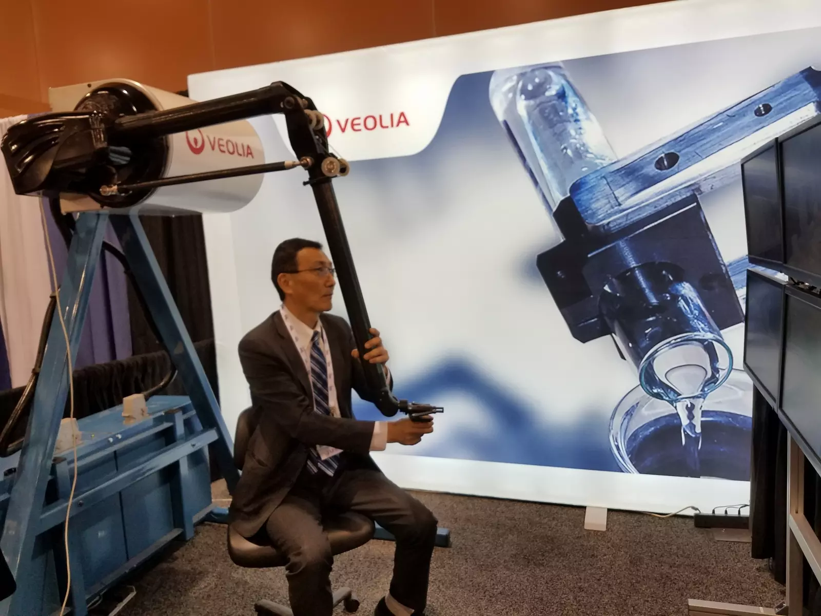 R : Nos équipes ont mis en évidence ce que de nombreuses personnes ont pu constater au cours des dernières années : Veolia Nuclear Solutions offre la gamme la plus complète de technologies, d'expertises et de services pour l’assainissement des installations et le démantèlement ainsi que le traitement des déchets radioactifs de faible et moyenne activité. Par ailleurs, le thème choisi cette année était la robotique. L’occasion idéale pour démontrer le fait que nous sommes la première entreprise au monde en ce qui concerne ces technologies de pointe. Plus particulièrement, nous créons des technologies conçues pour être à même de relever les défis les plus difficiles en matière de traitement des déchets nucléaires. Nous avons exposé une quantité importante de matériel à la conférence, y compris des systèmes robotisés en provenance du Royaume-Uni et des États-Unis, ce qui démontrent notre expertise en matière de télémanipulation et nos capacités techniques et technologiques. Dexter, notre système de télémanipulation à distance, est un bon exemple de nos innovations technologiques.